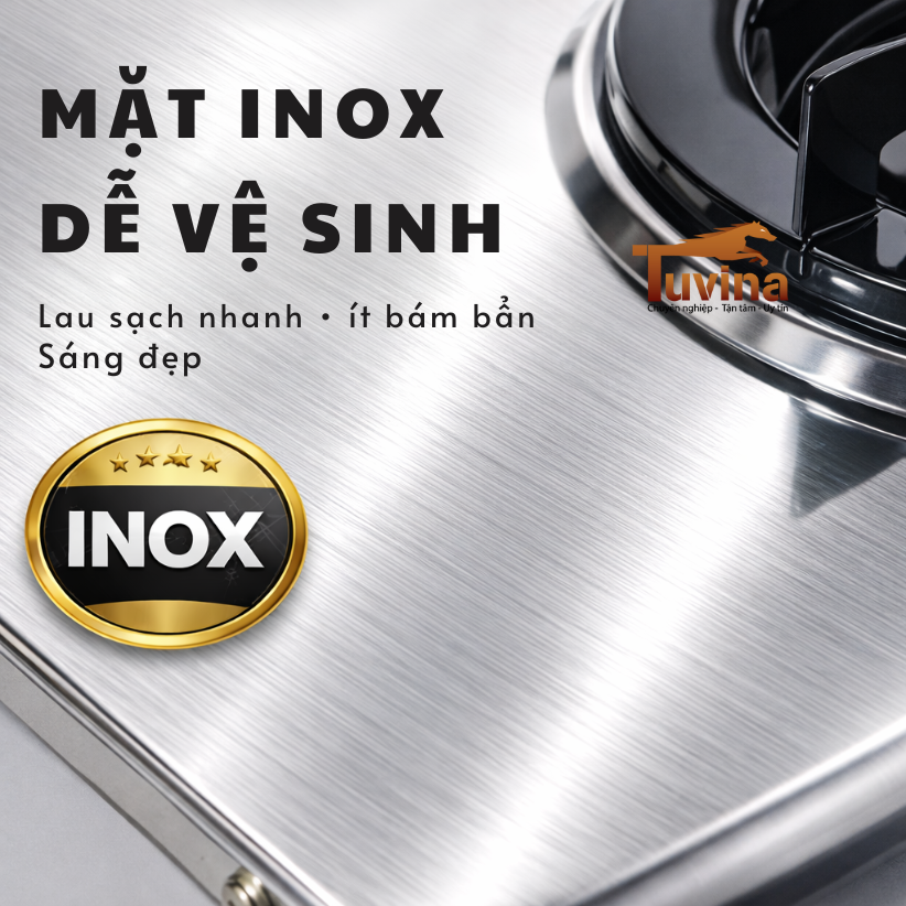 Có. Mặt inox giúp lau sạch nhanh và giữ bếp sáng sạch.