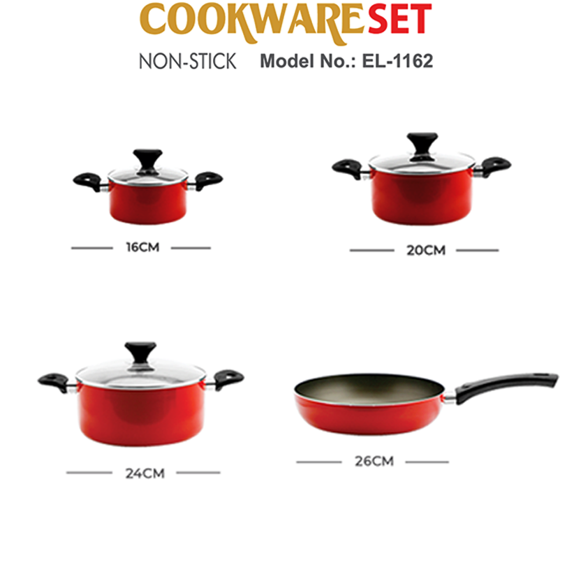 Bộ sản phẩm gồm 3 nồi và 1 chảo với những kích cỡ phổ biến 16 – 20 – 24 – 26cm đáp ứng nhiều mục đích sử dụng khác nhau trong gia đình, tiết kiệm chi phí mua sắm đồ gia dụng.