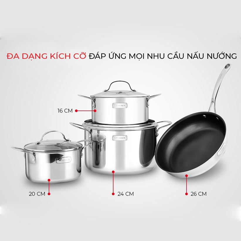 | Kích thước(Đường kính x Chiều cao) | 18, 20, 26 cm và chảo 26cm |