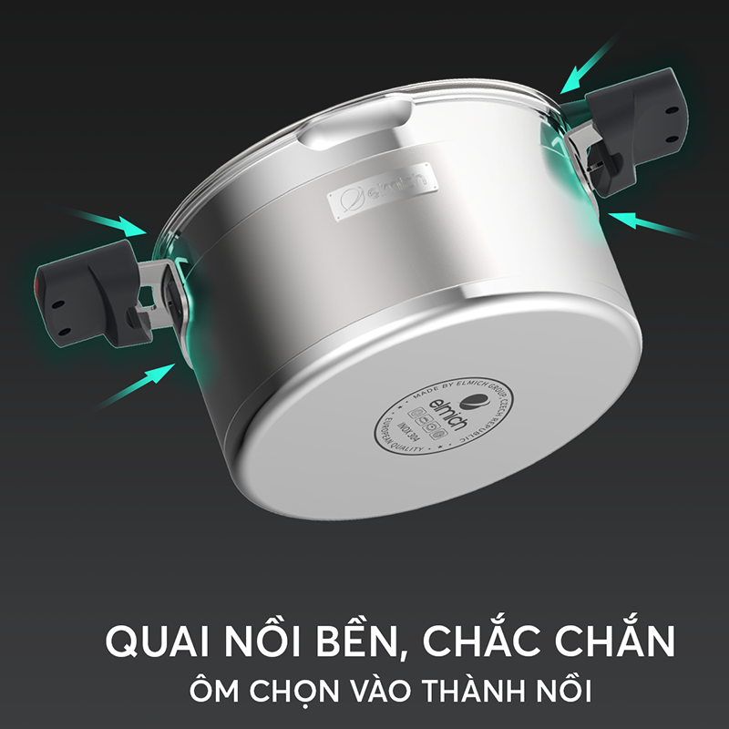Bộ nồi inox liền khối Elmich Milano EL-8093 size 16, 18, 22, chảo 26cm