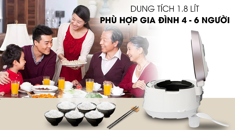 Dung tích nồi 1.8L, cho từ 4 đến 6 người ăn.