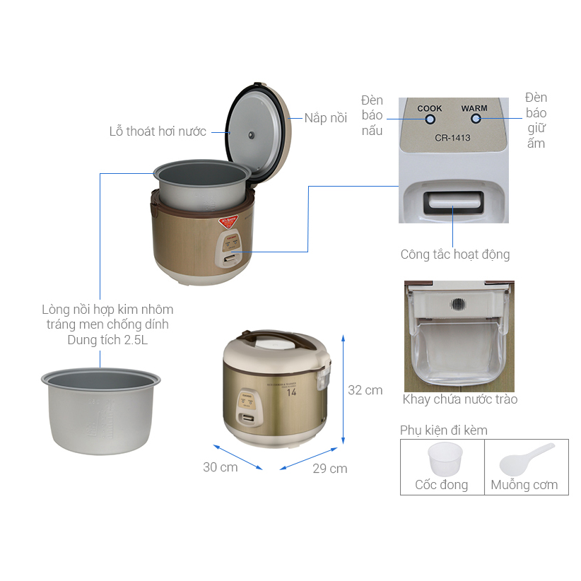 + Rơ le tự ngắt: Khi nhiệt độ đạt đến mức nhất định, đảm bảo an toàn, rơ le sẽ tự ngắt chế độ nấu sang chế độ giữ ấm.