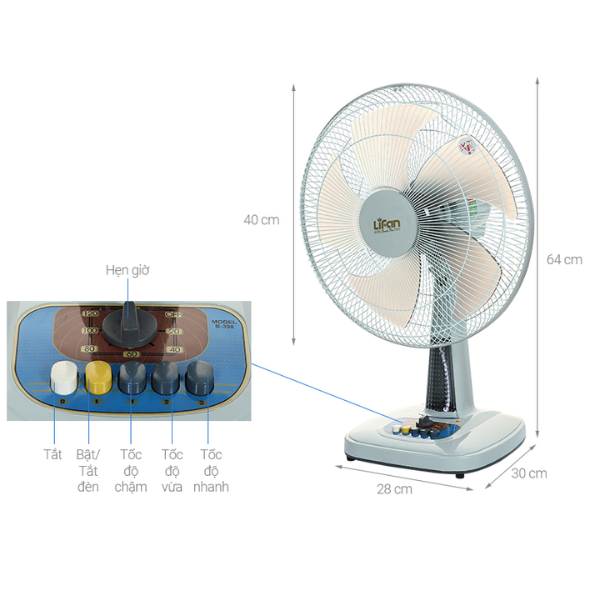 LIFAN B-398 là mẫu quạt bàn gọn gàng, phù hợp đặt tại phòng ngủ, bàn làm việc, phòng trọ, quầy thu ngân… Quạt hoạt động với công suất 45W, có 3 mức gió để bạn dễ chọn mức mát phù hợp.