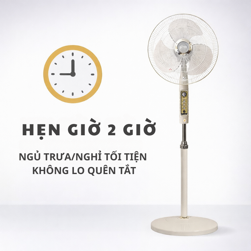 1) Quạt Đ-216A có hẹn giờ không? Có, hẹn giờ 2 giờ.