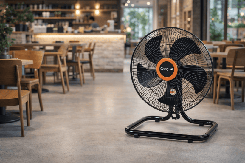 Đặt lệch đầu dãy bàn, cho gió thổi dọc theo lối đi → mát “phủ” hơn, hạn chế thổi thẳng vào mặt khách.