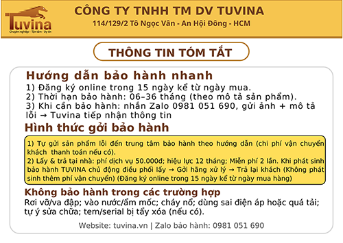Bảo hành: 6 tháng (theo chính sách của hãng)